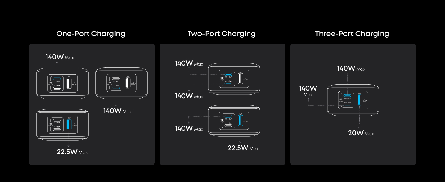 - 140W Max Fast Charging: Delivers up to 140W high-speed output for fast laptop charging when connected to a 5A cable. Power a MacBook Pro (M4 Pro) to 50% in 27 minutes or an iPhone 16 Pro to 50% in 26 minutes.