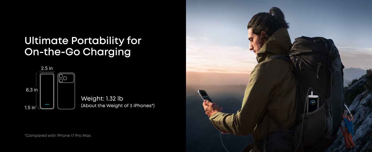 - Huge Power That's Ready to Fly: Delivers 26,250mAh (99.75Wh) of TSA-approved capacity to charge a MacBook Pro (M4) up to 0.8 times.