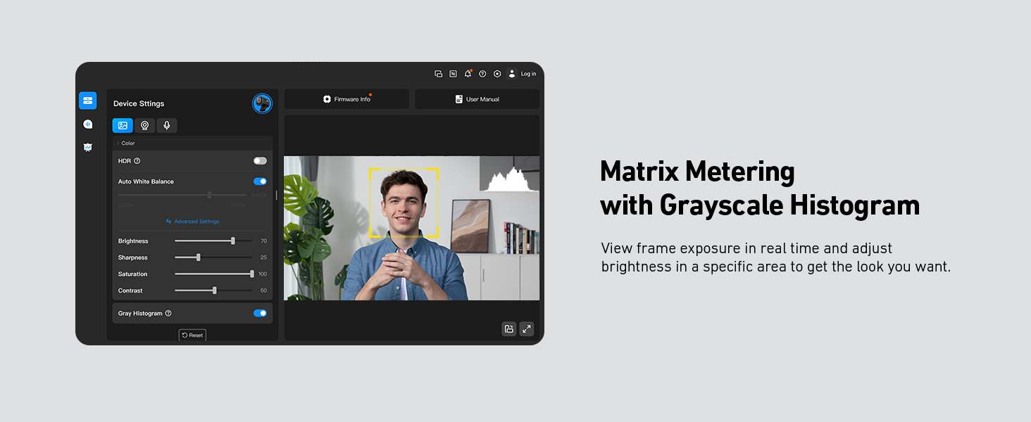- AI-Powered Functionality: Combines AI autofocus, AI framing, and dual-microphone AI noise canceling to automatically optimize your sound and display in real-time.
