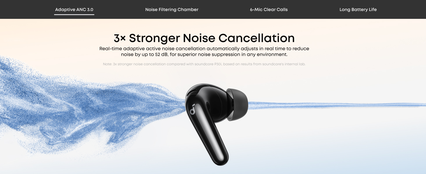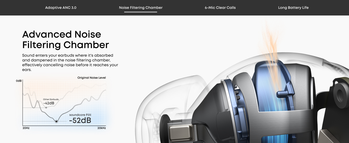 - Real-Time Adaptive Noise Cancelling: Reduces noise by up to 52 dB with adaptive technology that detects your surroundings and automatically chooses the best noise-cancelling level for you.