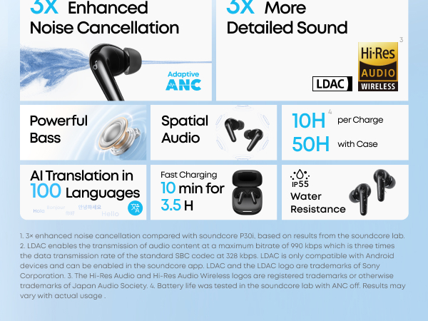 - Hi-Res Certified Sound with LDAC: Enjoy stunning, lossless Hi-Fi audio powered by LDAC and Hi-Res Audio certifications. These noise-cancelling earbuds accurately deliver the fine details for rich, well-balanced treble and bass.