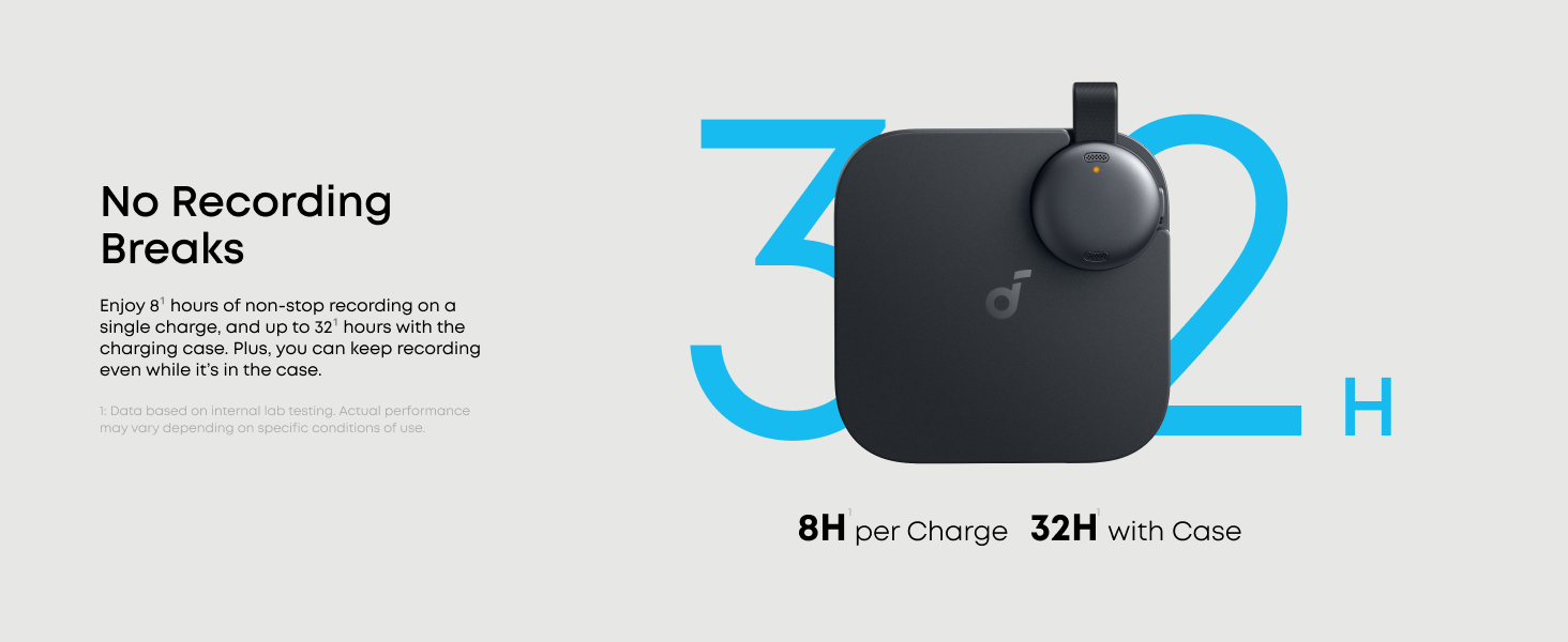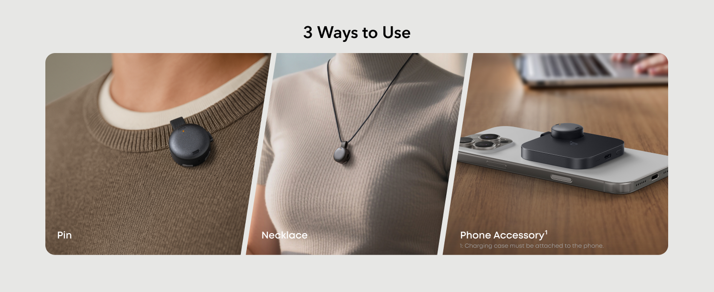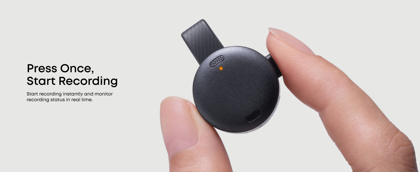 Instant Recording: Weighing just 10 g and only 23.2 mm in diameter, clip to collar, hang around your neck, or attach the charging case (microphone inside) to your phone. Start recording instantly with a single button press.