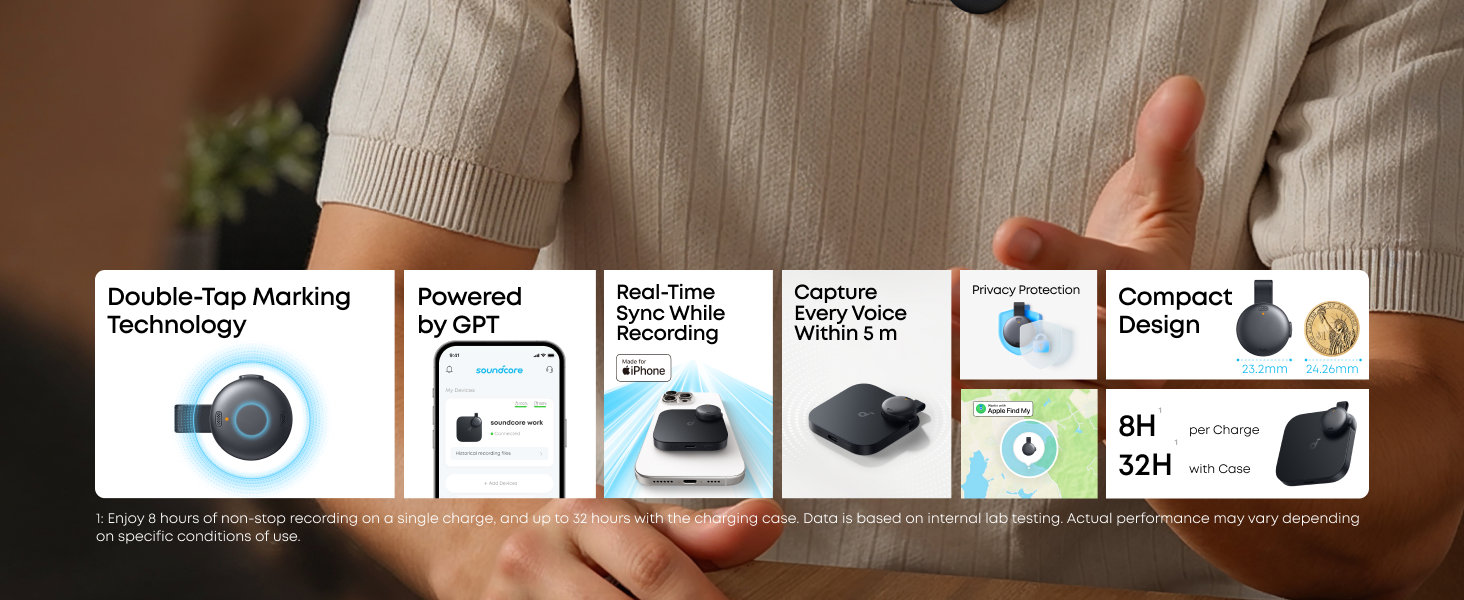 soundcore Work The World's First Coin-Sized AI Voice Recorder