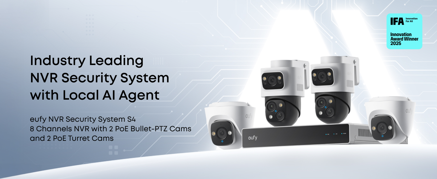 eufy PoE NVR Security System S4 with 2× Bullet-PTZ-Cameras and 2× Turret-Cameras